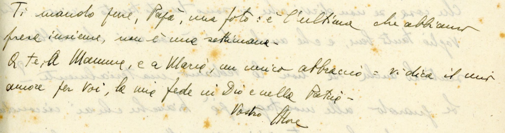 In una lettera indirizzata ai genitori, in cui parla della morte del fratello, Serafino promette di inviare una foto di loro due, risalente a meno di una settimana prima.